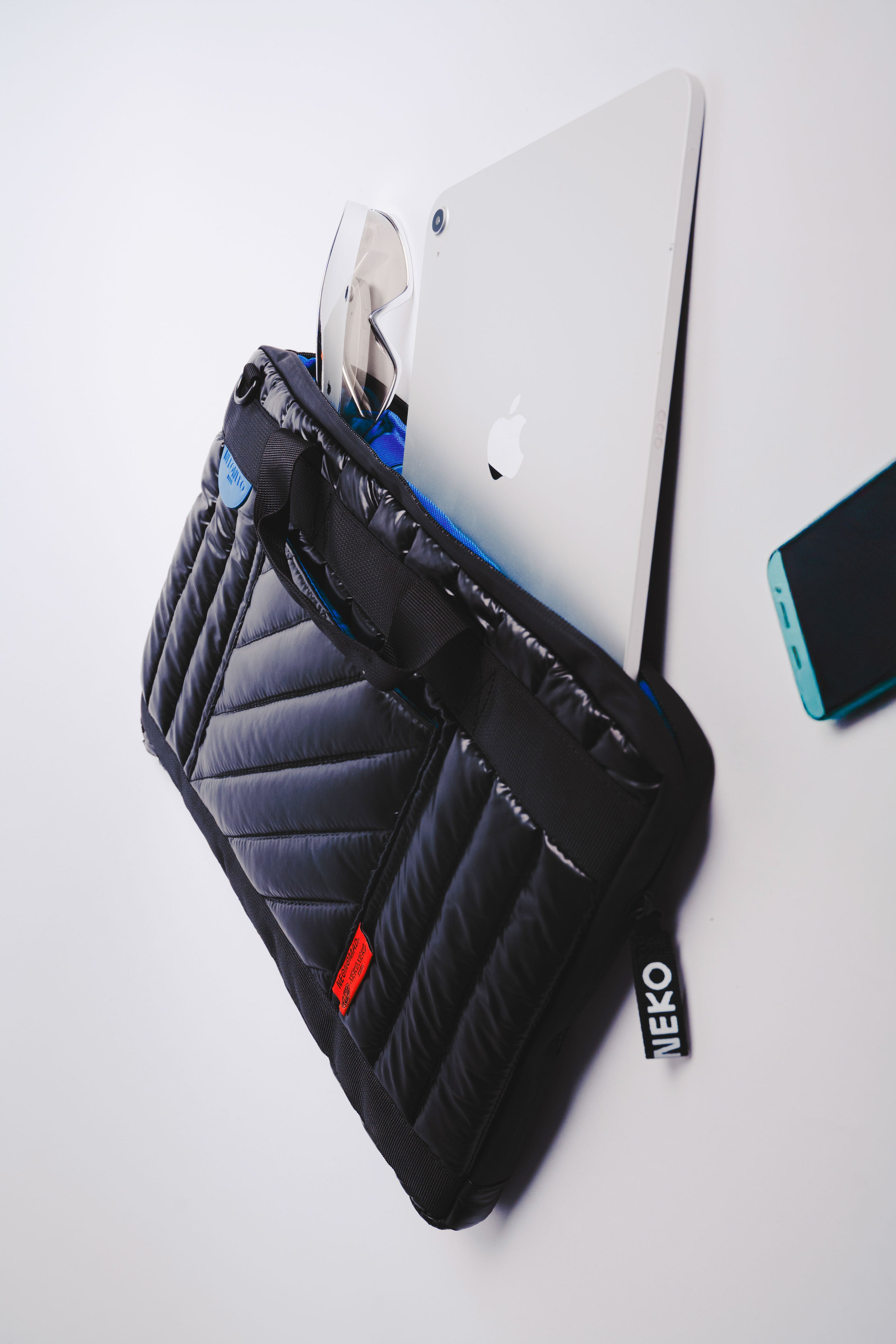 À l’intérieur, un compartiment matelassé absorbe les chocs et maintient votre ordinateur en sécurité. Les poches zippées permettent d’organiser documents, chargeurs, stylos, clés USB (et tout ce qui finit normalement au fond d’un tote). Résultat : tout est à sa place, et vous restez concentré.e sur l’essentiel.