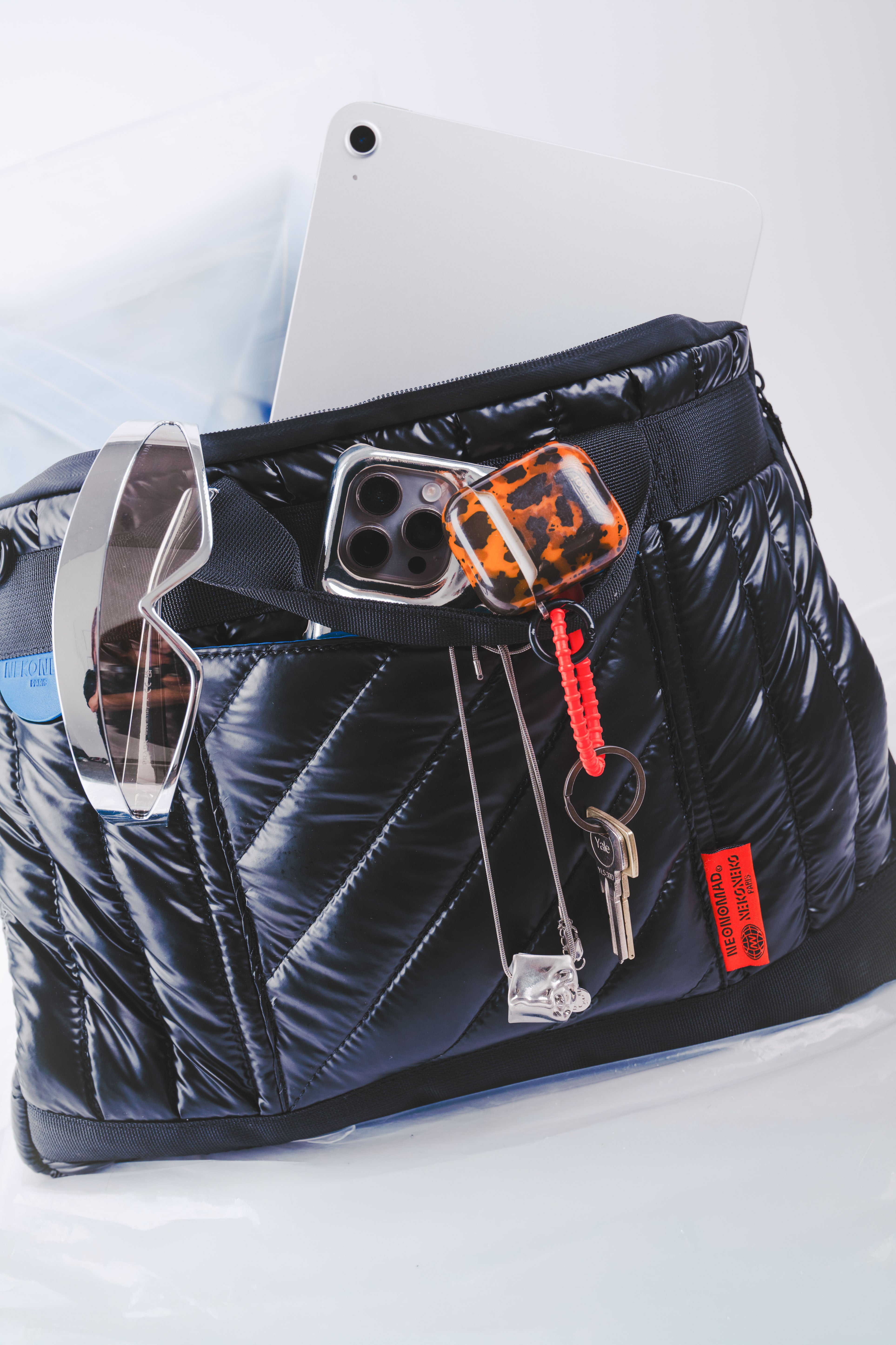 Pour plus de liberté, la bandoulière exclusive Néonomade, confortable et légèrement matelassée, permet un porté croisé agile et moderne — parfait pour enchaîner métro, rendez-vous, coworking et déplacements.